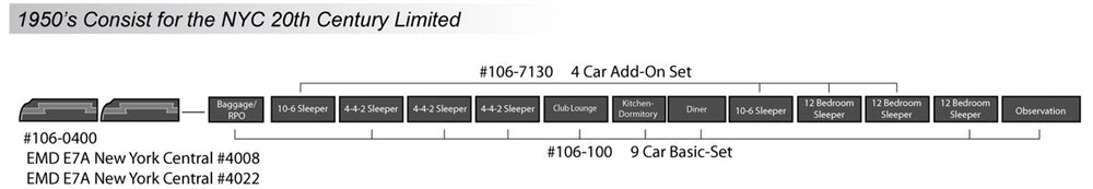 Released along with a pair of newly tooled EMD E7A locomotives era appropriate to pull the train!